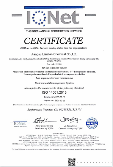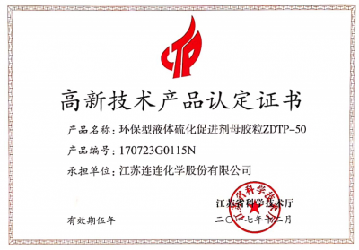 环保型液体硫化促进剂母胶粒ZDTP-50认定证书
